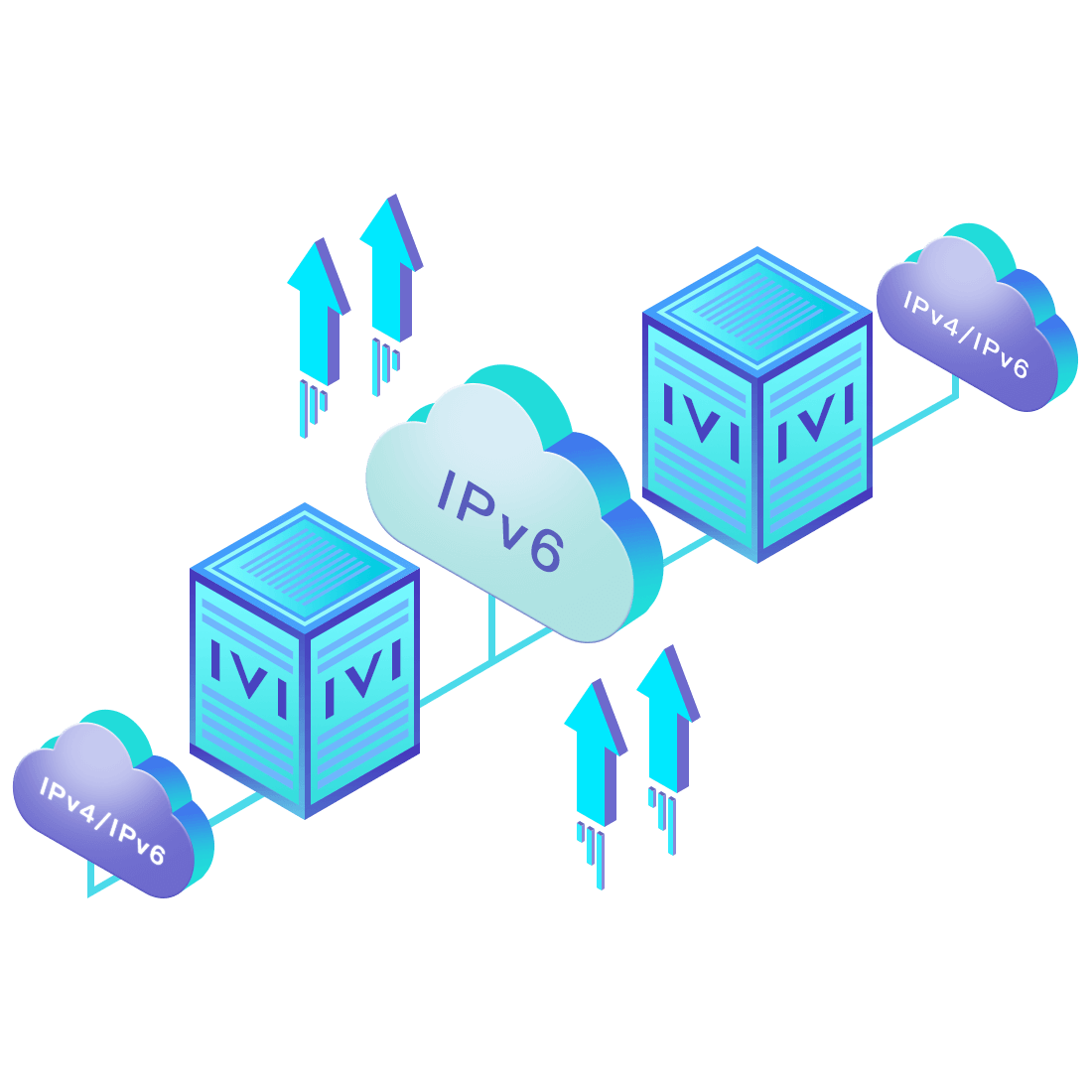 對正在進行IPv6整體升級規(guī)劃的運營商,應用IPv6升級方案2.5,通過IVI無狀態(tài)翻譯技術和純IPv6接入網(wǎng)絡,為雙棧客戶端和雙棧服務器提供連通服務。
